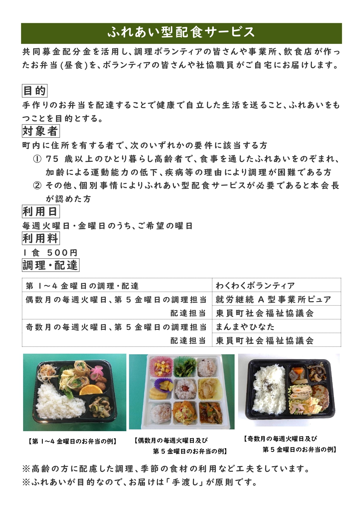 - 毎週火曜日、第5金曜日の配達…東員町社会福祉協議会