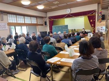 また、法要後に総会が行われました。総会に引き続き、生き生きサロンが開催され、NPO法人福祉ネットどんぐりの服部綾水先生による認知症予防・介護予防講座が行われました。