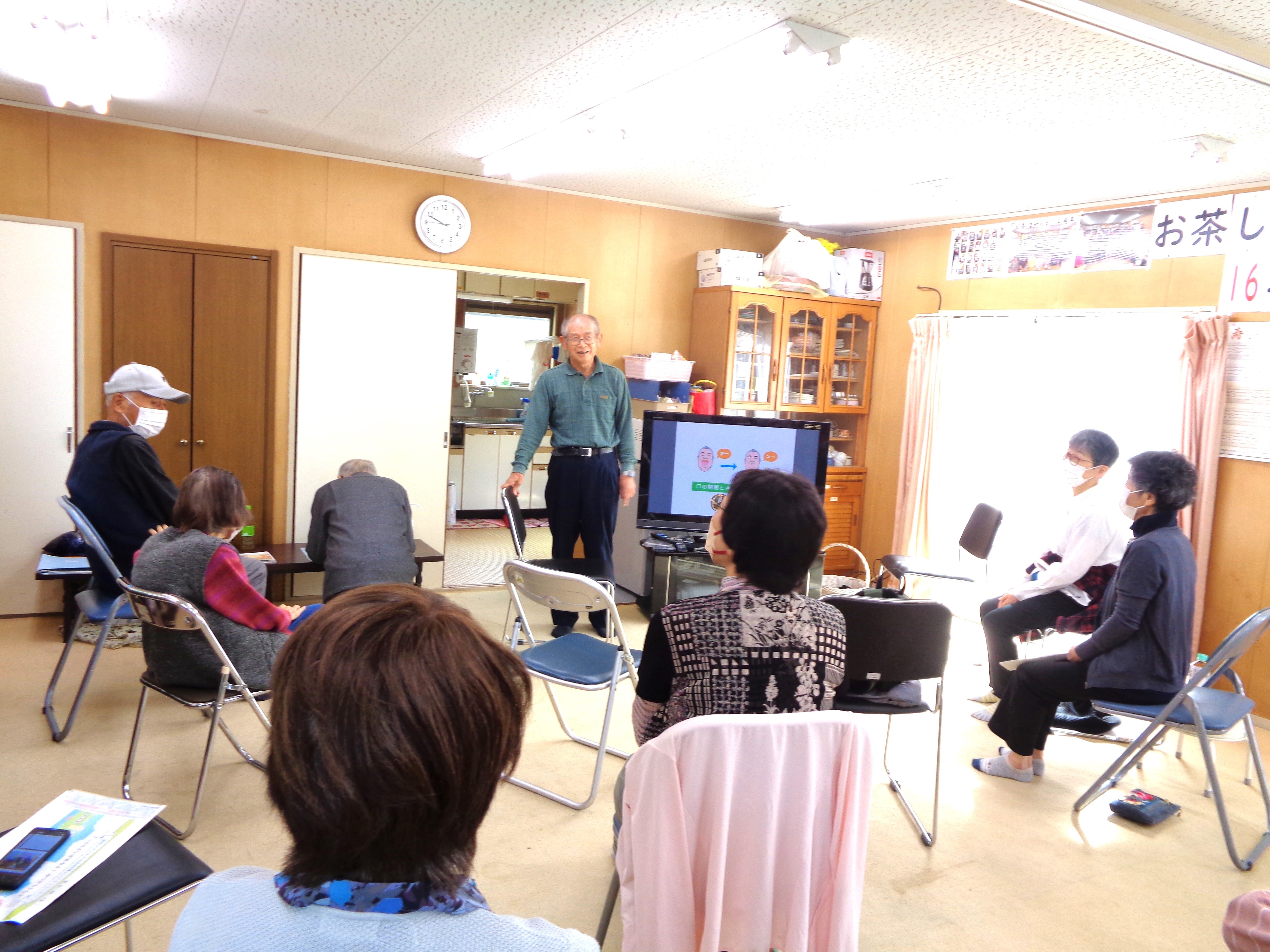 参加された方は延べ50人以上になりました。今も、回覧と口コミで広がっています。広がりは丁目を越えており、今日は、笹尾東2丁目の方が見学にいらっしゃって、体操と運営のコツを学んでおられました。
