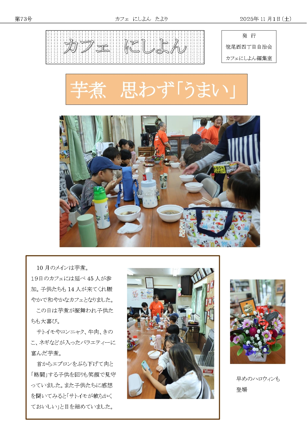 【支えあい】カフェにしよんたより 第73号 ~笹尾西4丁目地区・カフェにしよん~