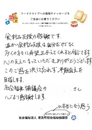 『フードドライブ』の支援を受けた家庭から、支援物資の感想やお礼のメッセージが寄せられました!その中には、食料の到着を喜ぶ声はもちろん、支援者の存在が前向きな気持ちや安心感につながったという言葉もありました。