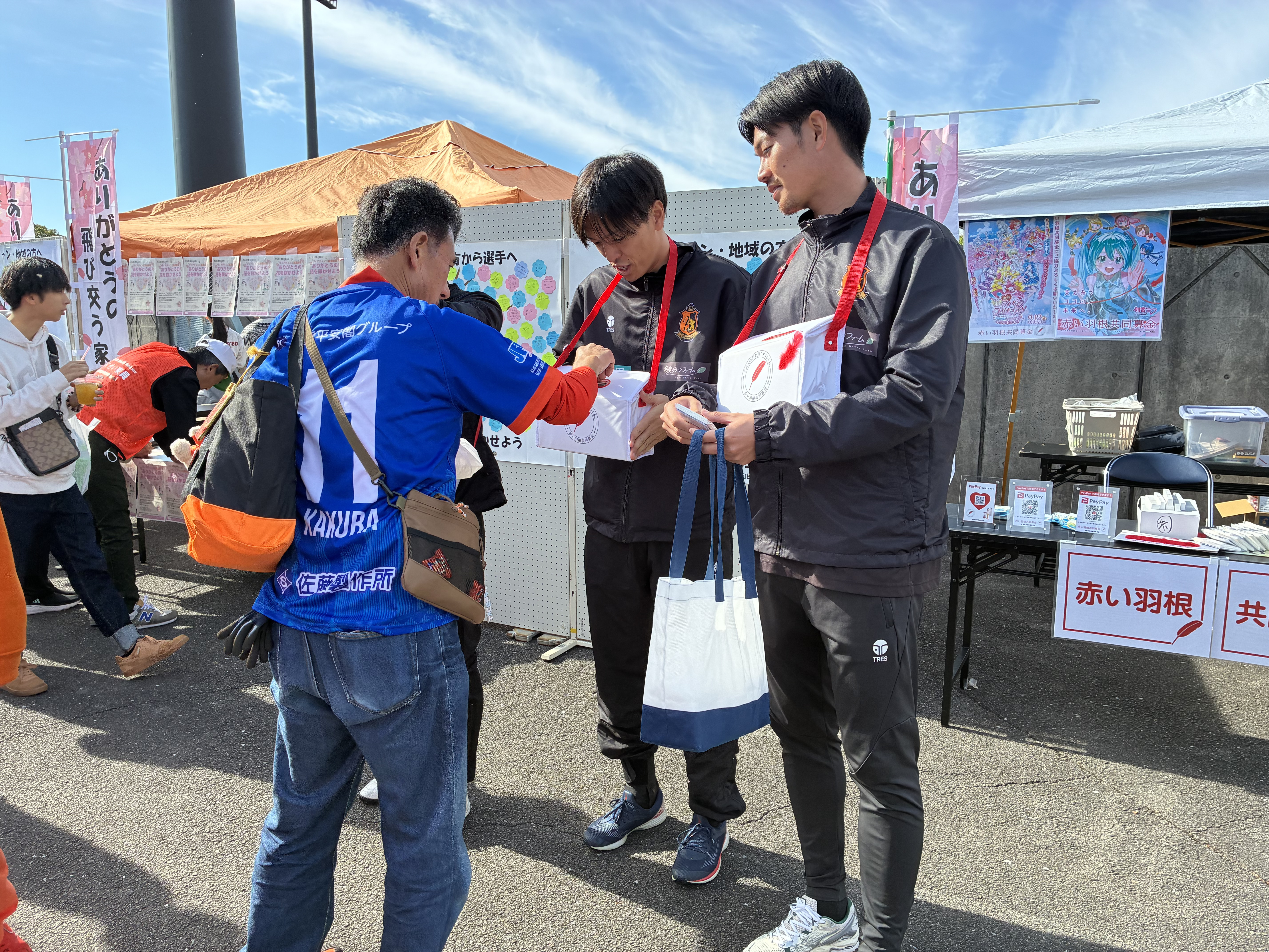 令和7年11月23日(日)、LA・PITA東員スタジアムで行われたヴィアティン三重2025シーズンのラストホームゲームで東員町共同募金委員会は赤い羽根共同募金活動を行いました。
