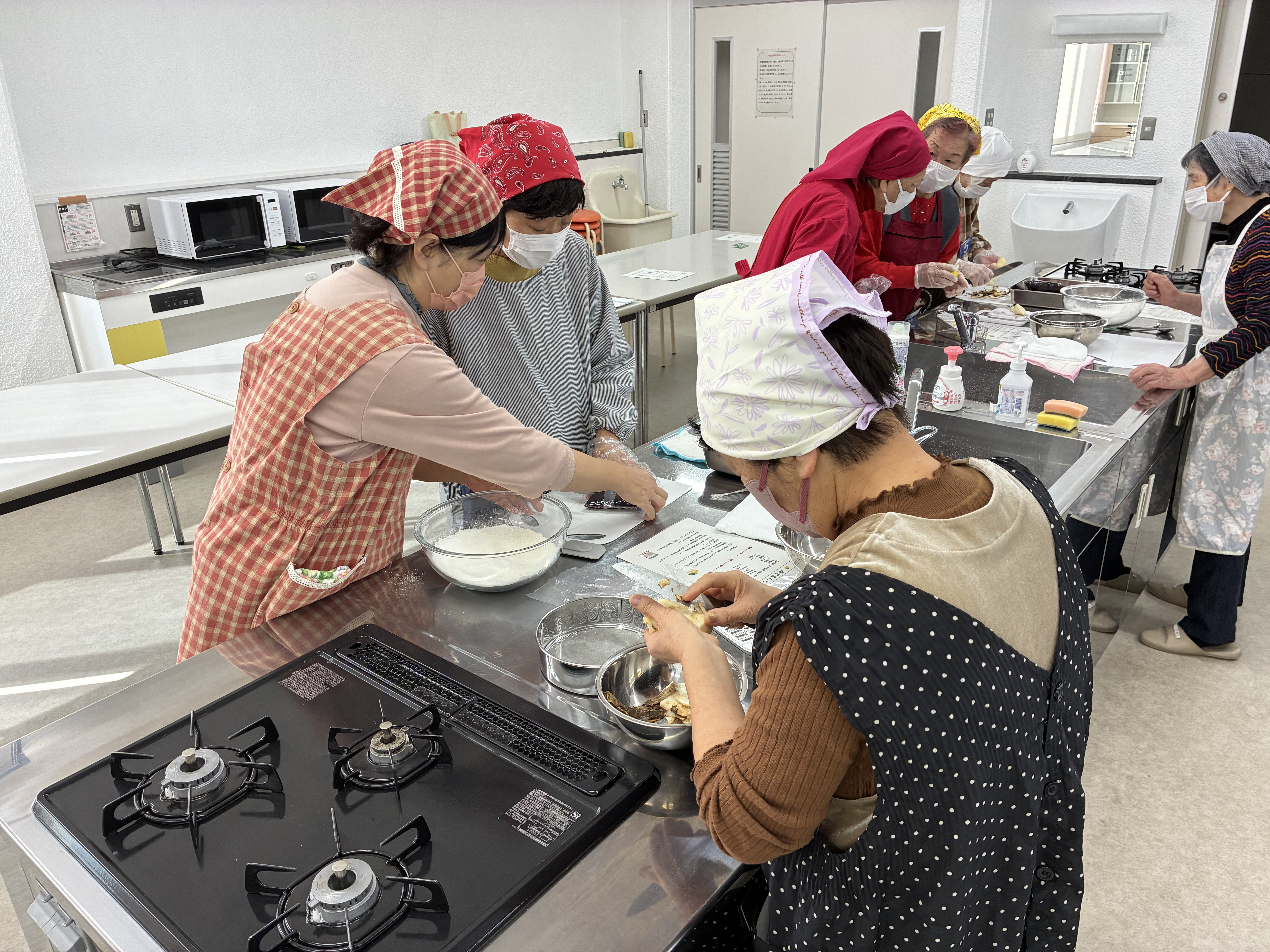 【シニアクラブ】「失敗してもええの!自分でやって、コツをつかんだらOK」~お菓子作り調理実習~