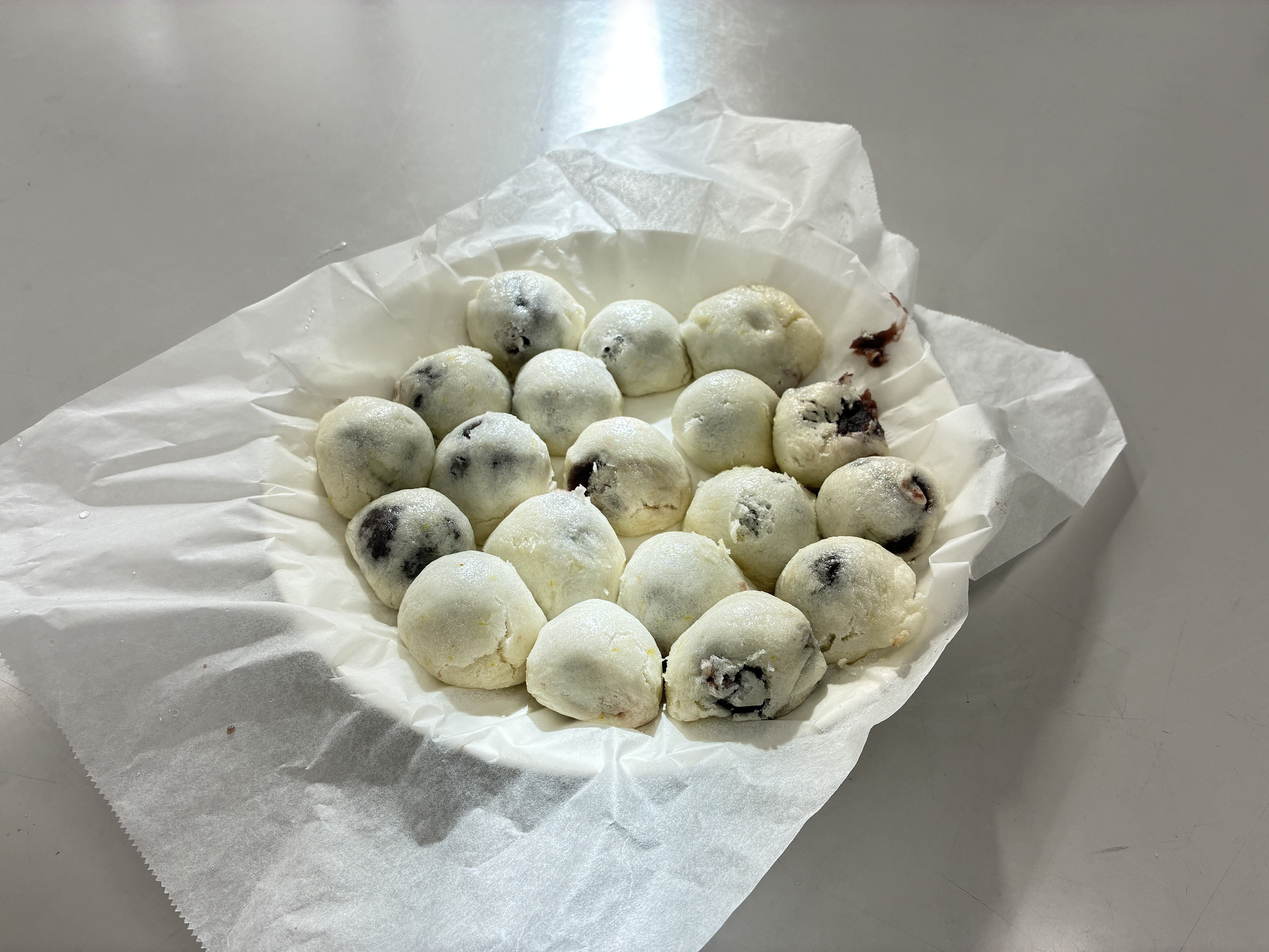 苦戦していたあんこの包み方も、先生のレクチャーでコツをつかみ、上手く包めるように!