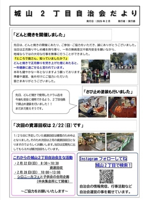 【支えあい】城山2丁目自治会だより2月 ~城山2丁目自治会~