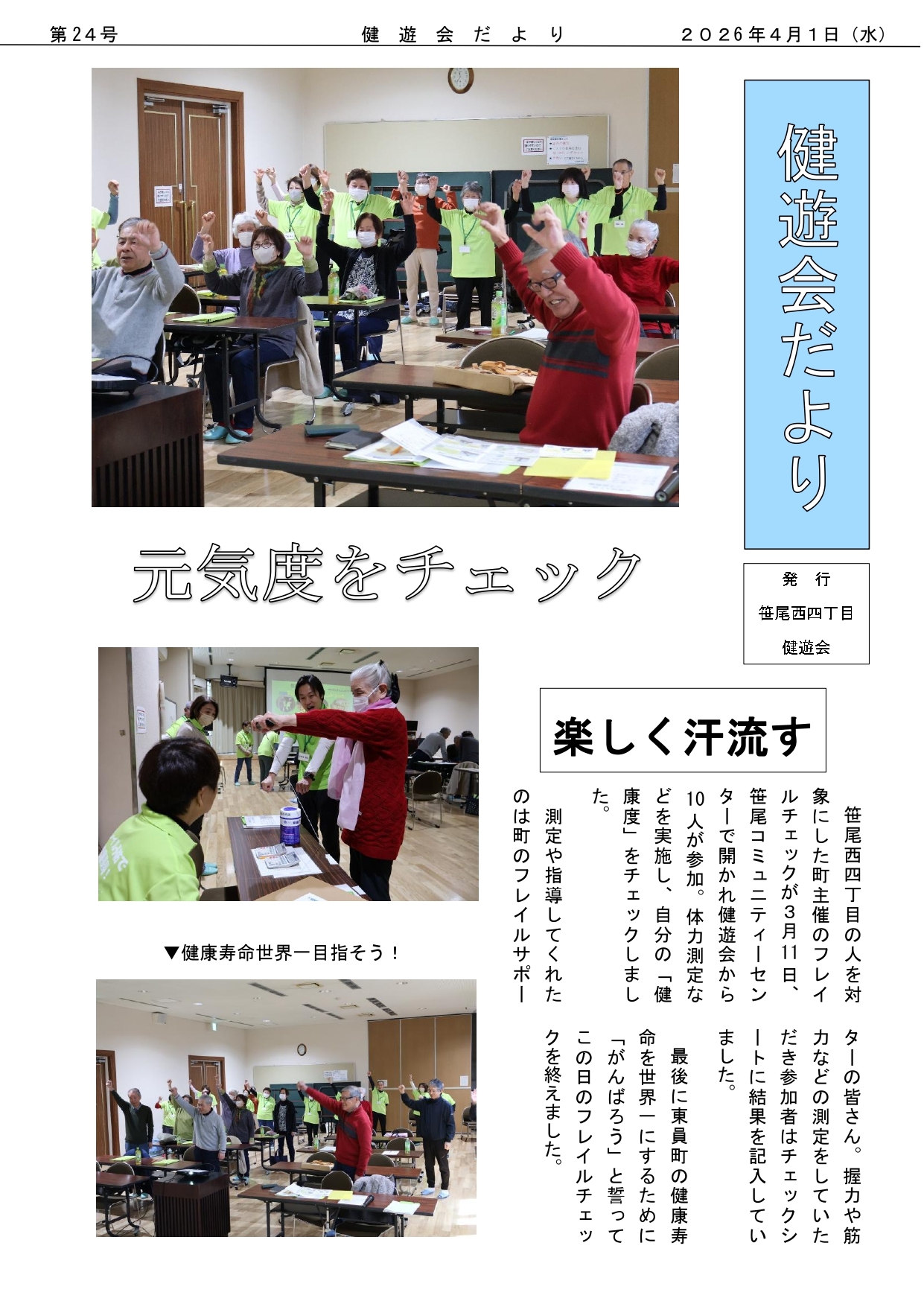 笹尾西4丁目で活動されている健遊会の活動を地区の皆さんに知ってもらうために、『健遊会だより』が発行されています。