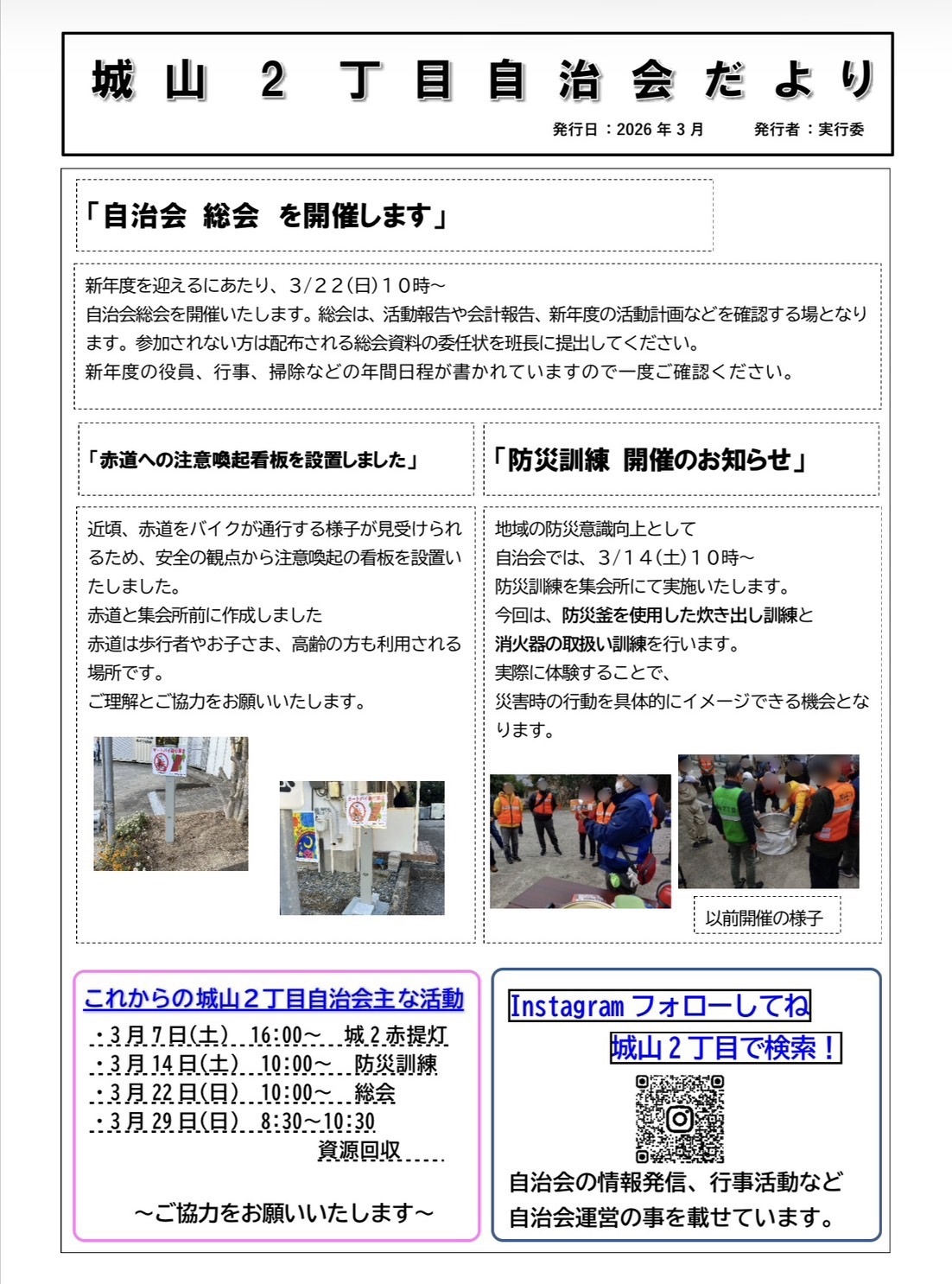 【支えあい】城山2丁目自治会だより3月 ~城山2丁目自治会~